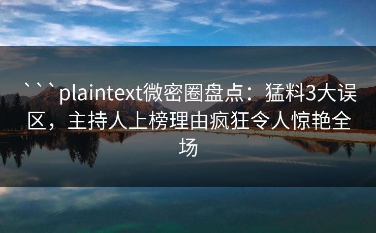 ```plaintext微密圈盘点:猛料3大误区,主持人上榜理由疯狂令人惊艳全场